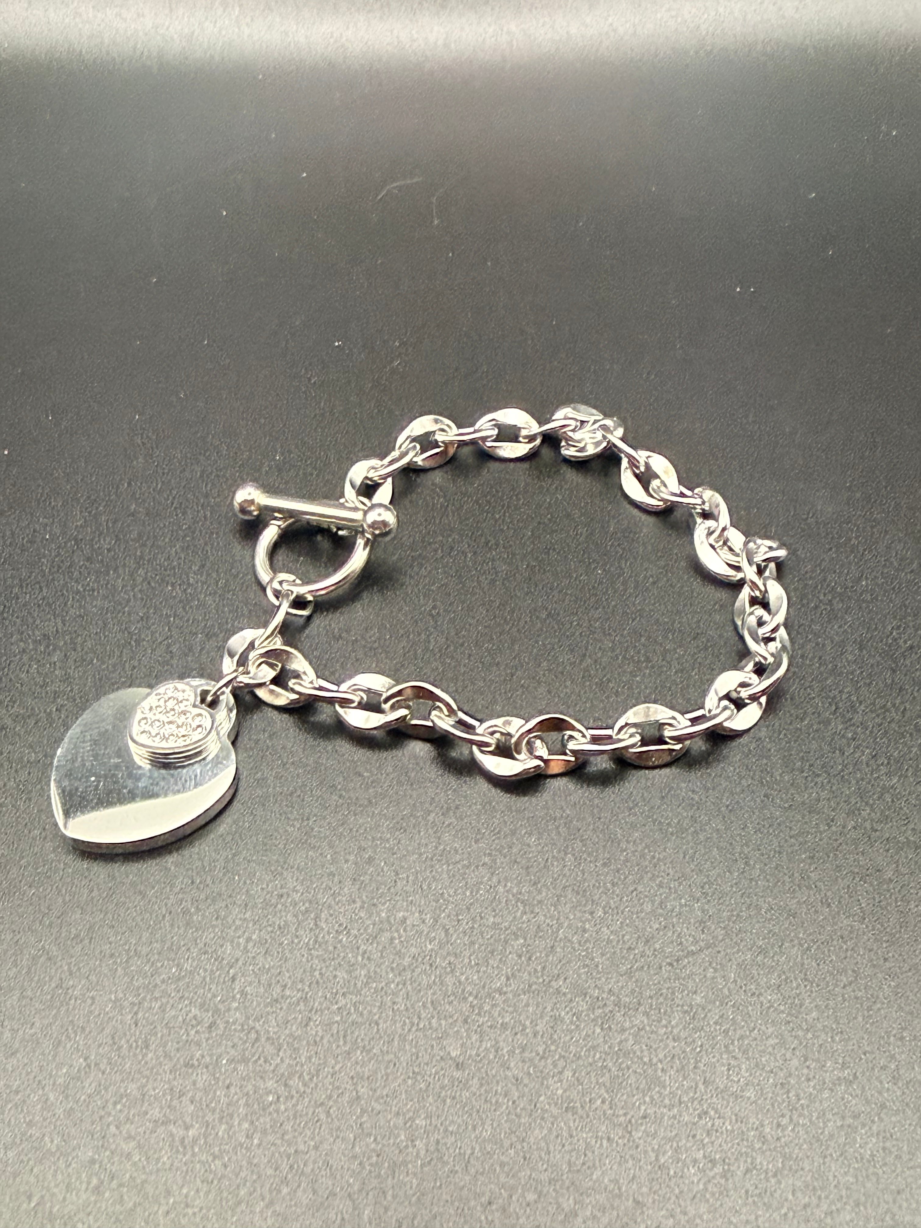 Das Silver Pulse Heart Bracelet vereint massive Glieder mit einem klaren Herz-Anhänger – minimalistisch, aber mit Haltung.