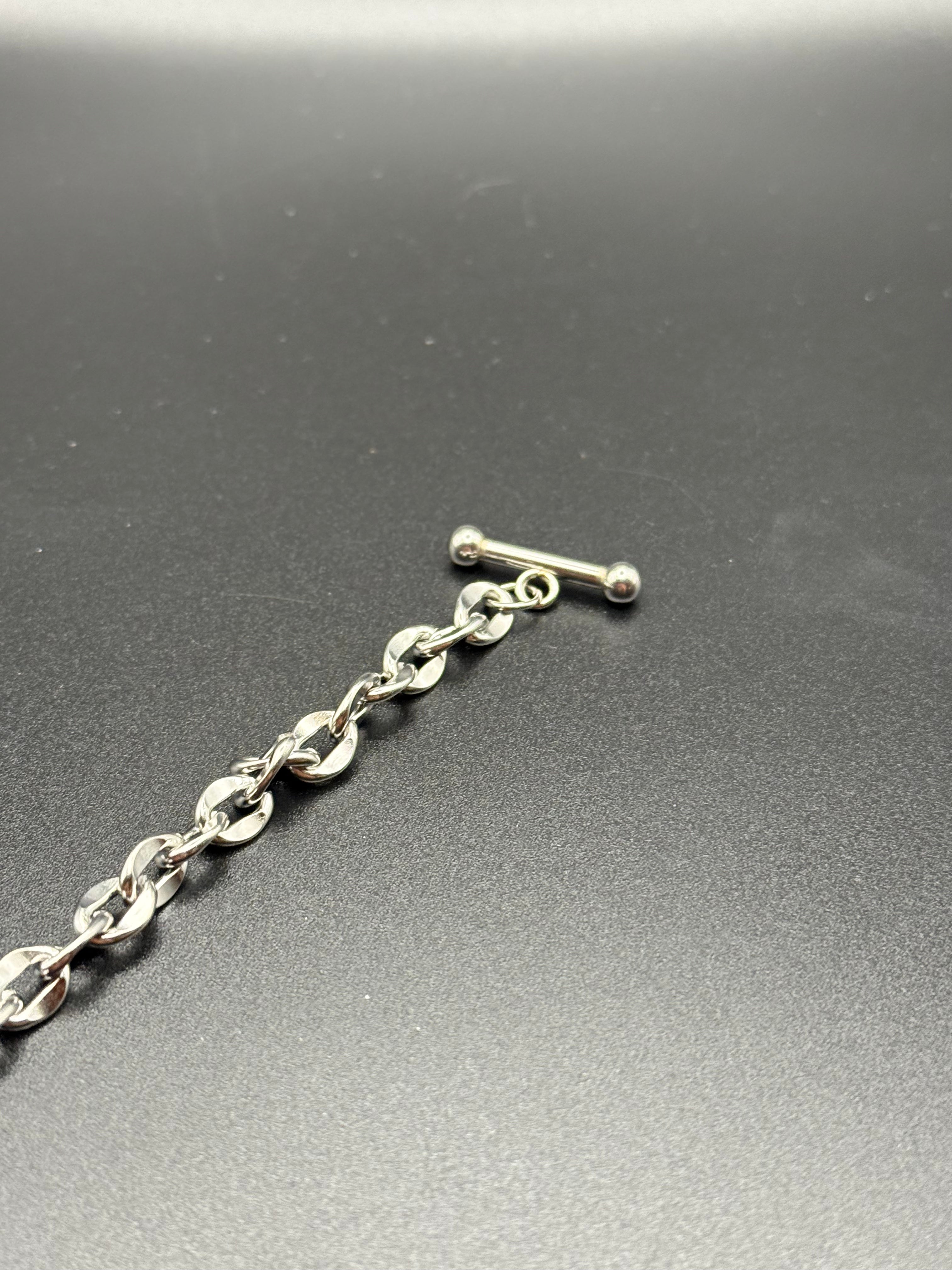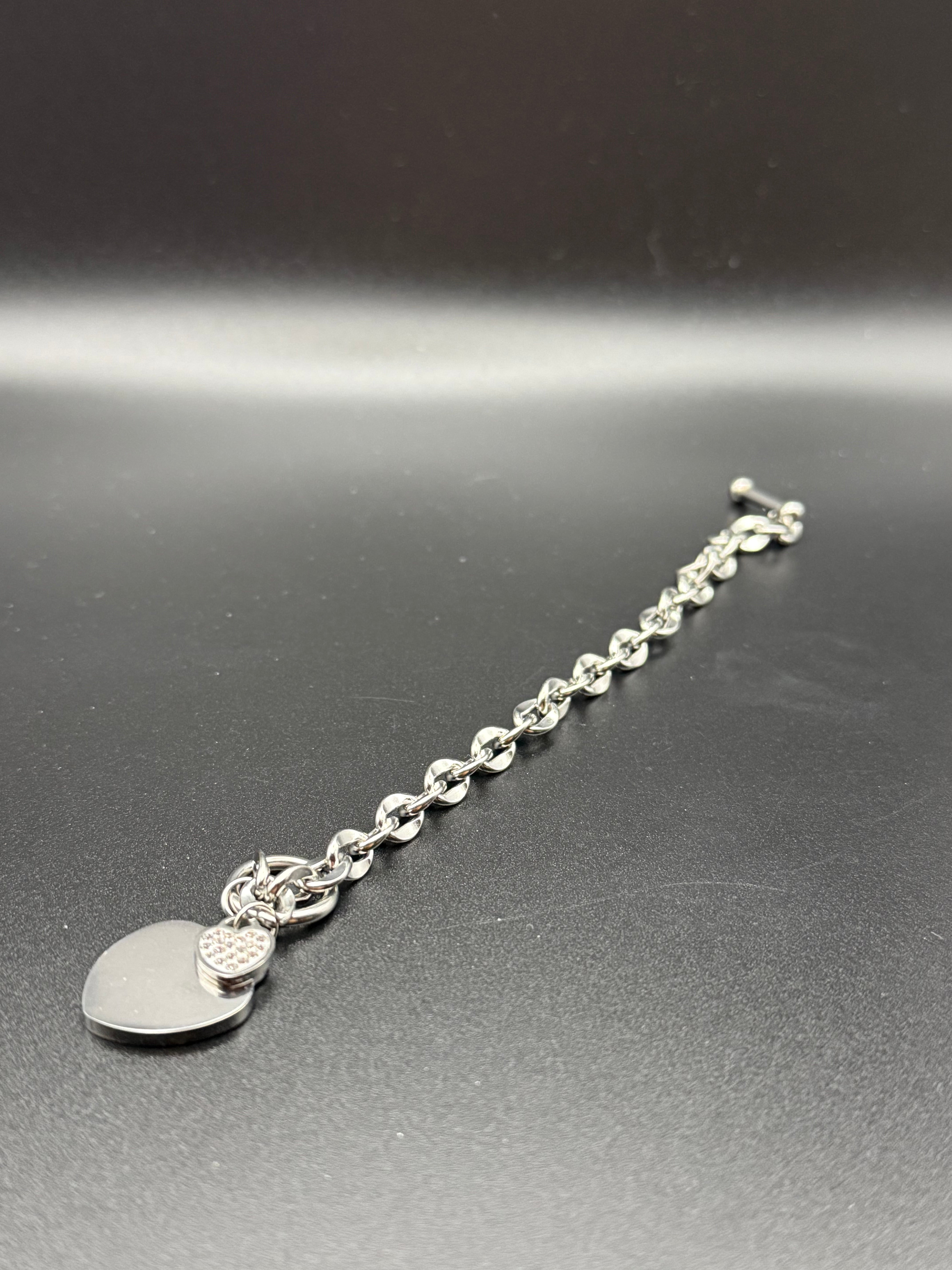 Die markante Kettenstruktur trifft auf glänzendes Silber-Finish und wird durch das doppelte Herz-Detail zum subtilen Highlight. Stark. Zeitlos. Selbstbewusst.