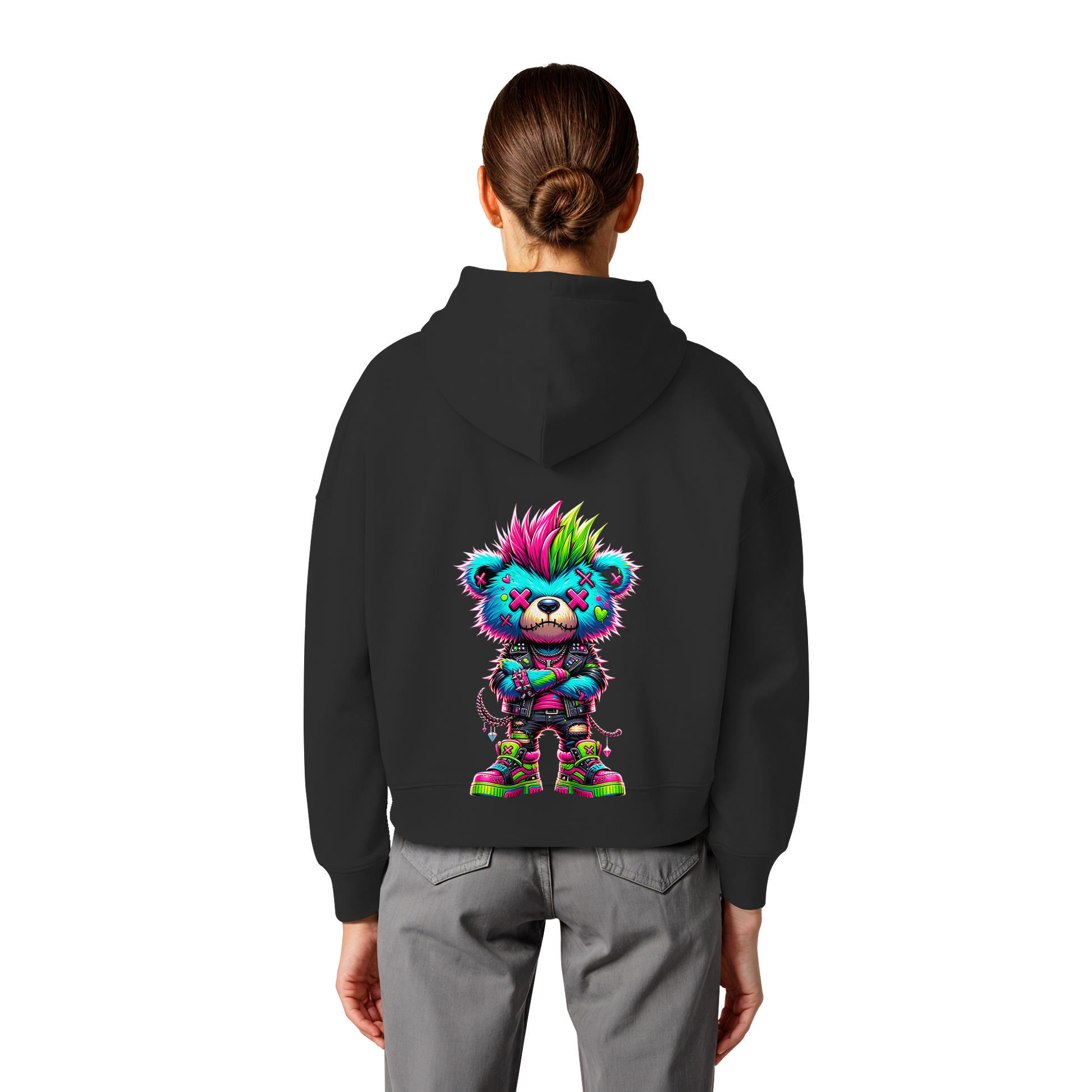 Punk Neon Teddy - Womens Organic Boxcut Hoodie